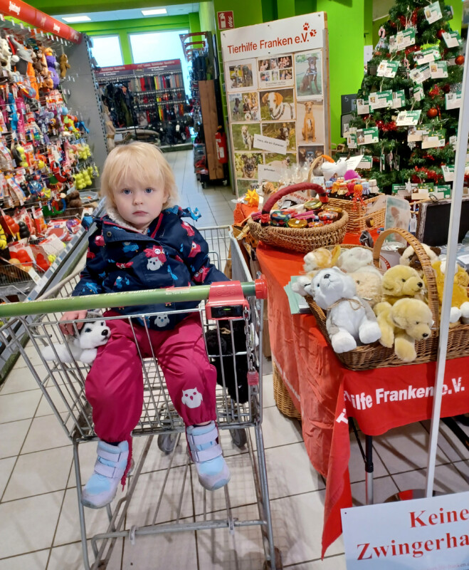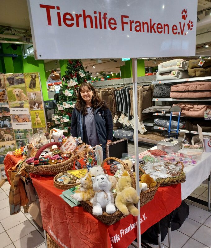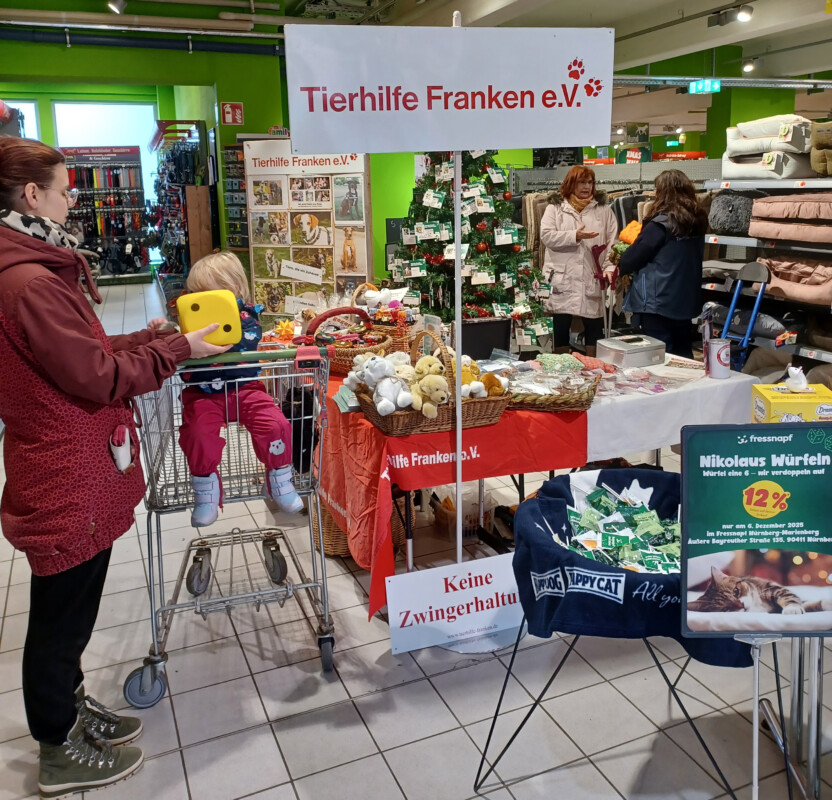 Am Nikolaustag durften wir mit einem Stand beim Fressnapf in Nürnberg in der Äußeren Bayreuther Straße zu Gast sein. Wie immer hatten wir Leckeres und Schönes dabei, aber dieses Mal hatten wir auch unsere selbstgebackenen Plätzchen und viele tolle Geschenkideen für Weihnachten im Gepäck. Es war uns eine Freude, mit zahlreichen Tierfreunden ins Gespräch zu kommen und über den Verein zu informieren. Wir bedanken uns beim Fressnapf-Team, das uns so freundlich aufgenommen hat und bei allen, die uns durch großzügige Spenden unterstützt haben. Wir sind sehr dankbar dafür. Nachdem wir beim Abschied wieder eingeladen wurden, gibt es mit Sicherheit im nächsten Jahr ein baldiges Wiedersehen.