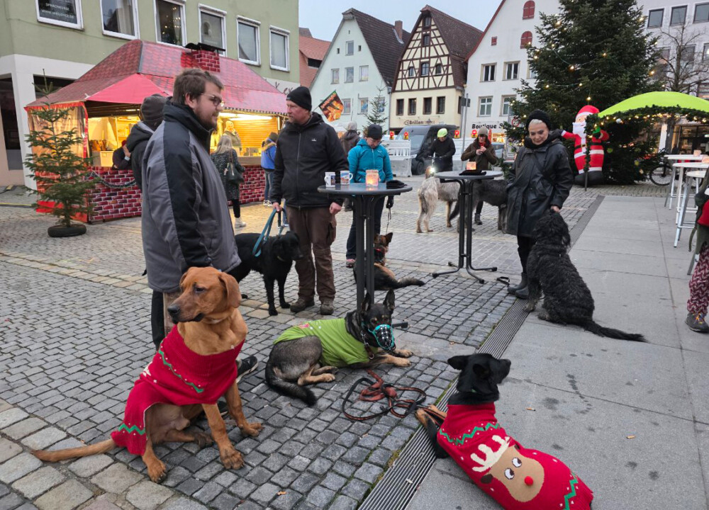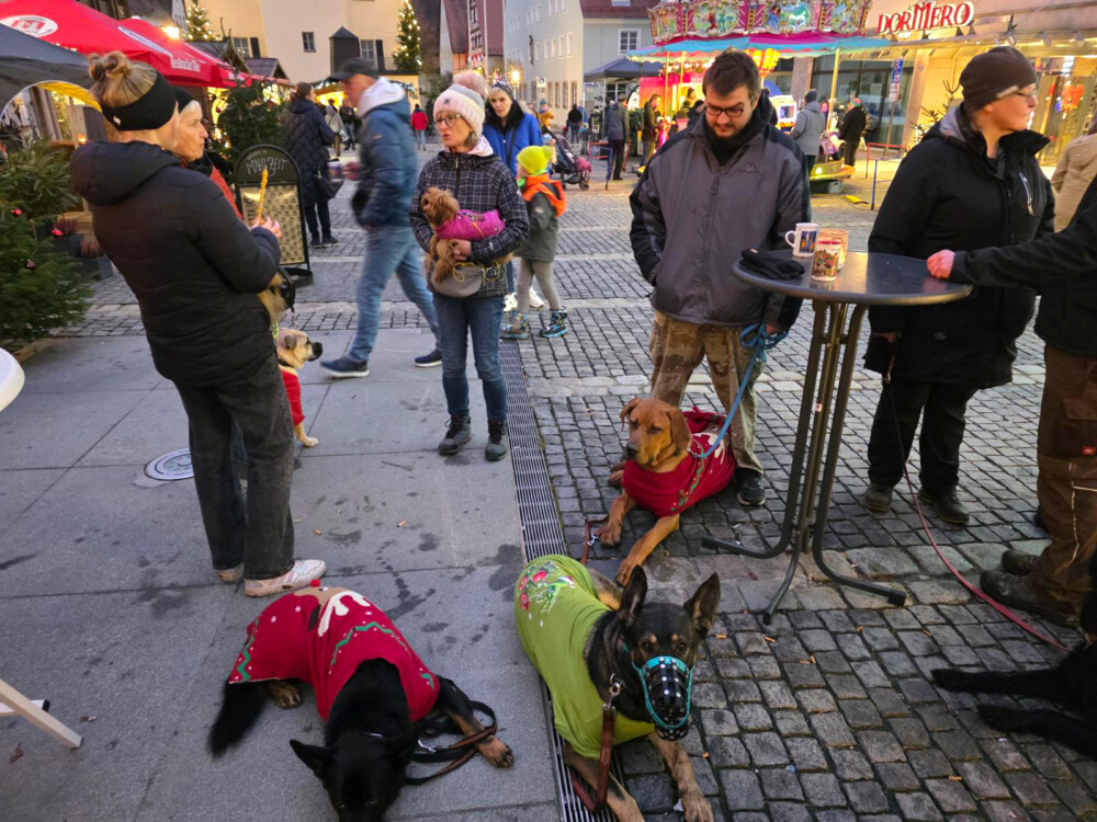Die Tierhilfe Franken hat jetzt Betriebsurlaub und das Büro ist geschlossen, so geht es mit Pflegefrauchen, Hundetrainerin Irena Klinkowski, auf den Hersbrucker Weihnachtsmarkt zum Training.
