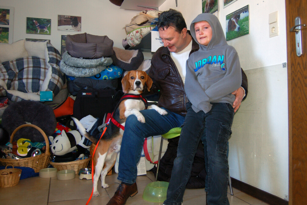 Archie Boy kommt aus Nürnberg und wurde wegen der psychischen Erkrankung seines Herrchens abgegeben. Der hübsche Beagle-Rüde ist ein kleiner Lausbub und Herzensbrecher. Er bringt viel Lebensfreude mit und ist ein lustiger, goldiger Bursche, der für jeden Spaß zu haben ist. Anfangs zwar etwas zurückhaltend, taut er aber schnell auf und zeigt sich dann von seiner Beagle-typischen Art: verspielt, freundlich, voller Tatendrang. Wie es sich für sein Alter gehört, steckt er mitten in der Pubertät und muss noch einiges lernen. Mit Leckerlis lässt er sich toll motivieren und lernt schnell. Im Auto fährt der Herzbube brav mit und versteht sich mit den meisten Artgenossen. Aufgrund seiner rassetypischen jagdlichen Motivation sollten Kleintiere und Katzen nicht im neuen Zuhause leben. Die Leinenführigkeit muss noch geübt werden und auch das Alleinbleiben fällt ihm derzeit noch schwer. Er sucht Menschen, die ihn an die Pfote nehmen und ihm liebevoll aber konsequent das Hunde-1×1 beibringen möchten.