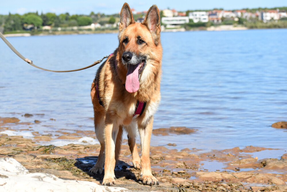Sie ist gut leinenführig und fährt gerne im Auto mit.