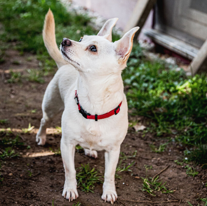 Kleiner Hundemann, der erst einmal sehr skeptisch gegenüber fremden Menschen ist, er orientiert sich sehr stark an seinem Hundekumpel Dobby deshalb möchten die beiden auch zusammen bleiben.