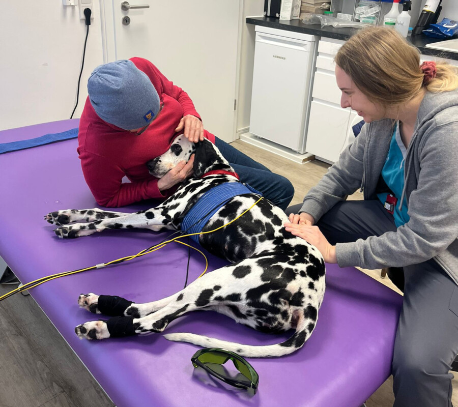 Josy Da, die liebenswerte Dalmatinerhündin, konnte in der dritten Novemberwoche plötzlich nicht mehr laufen. Nach eingehenden Untersuchungen hat sich herausgestellt, dass sie einen Bandscheibenvorfall hat. Besonders 4 Wirbel weisen starke Arthrosen und Spondylosen auf. Derzeit ist sie beim Laufen eingeschränkt und muss unterstützt werden. Die Tierärztin, der wir vertrauen, macht uns Hoffnung, dass durch entsprechende medizinische Maßnahmen (Medikamente, Physiotherapie, Elektrostimulation, Lasertherapie) sie wieder im wahrsten Sinne des Wortes „auf die Beine kommt“. Es ist bereits eine Besserung eingetreten.